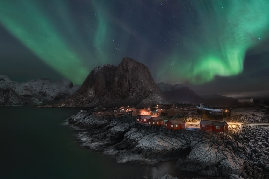 The Lofoten Islands, with their dramatic peaks and fjords, provide a breathtaking backdrop for the Northern Lights. The islands’ remote location ensures minimal light pollution, and their coastal charm adds a unique touch to the experience. Combine your aurora hunt with activities like fishing or exploring the colorful villages.